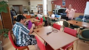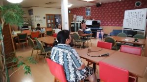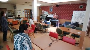 ☆こんにちは。地域活動支援センター(Ⅲ型)すずらんクラブです(西区平島2丁目) 社会福祉法人ジェロントピア新潟が運営しています。 今日は、音楽療法がありました。(すずらんクラブにて) みなさん、ウォーミングアップのあと、楽器演奏をしたり、歌ったりと、楽しく過ごされています。※ここでは、写真だけ紹介します。動画は、「すずらんクラブ動画・写真」へどうぞ。