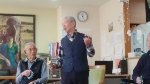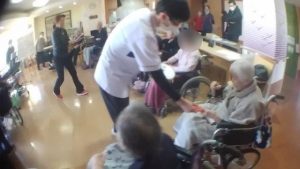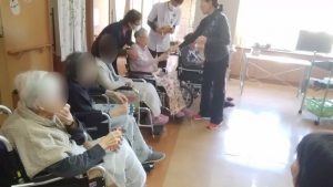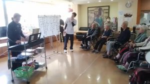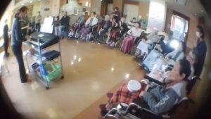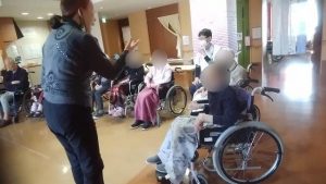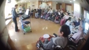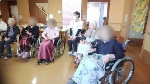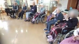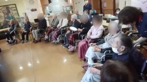 今日は、音楽療法がありました。(3花鳥にて) みなさん、準備運動や発声練習をして、楽器演奏をしたり、いっしょに歌ったりと、楽しく過ごされています。今日もみなさんの笑顔がたくさん見れてうれしいです。※ここでは、写真だけ紹介します。動画は「動画2026年1月」へどうぞ。