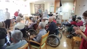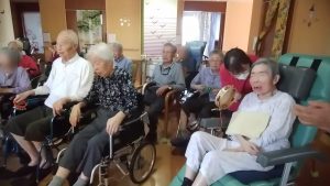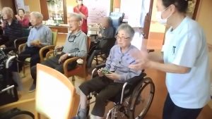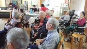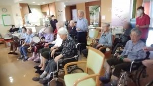 今日は、音楽療法がありました。(3花鳥にて) みなさん、楽器演奏をしたり、いっしょに歌ったりと、楽しい時間にしていただいてます!今日もみなさんの笑顔がたくさん見れてうれしいです!※ここでは、写真だけ紹介します。動画は「動画2025年10月」へどうぞ。