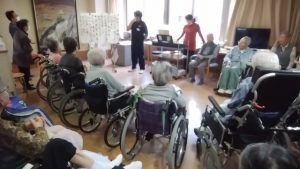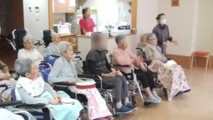 今日は、音楽療法がありました。(予定変更で、2風月にて実施) みなさん、楽器演奏をしたり、いっしょに歌ったりして、楽しい時間となっているようで、みなさんの笑顔がたくさん見れてうれしいです。※ここでは、写真だけ紹介します。動画は「動画2025年10月」へどうぞ。