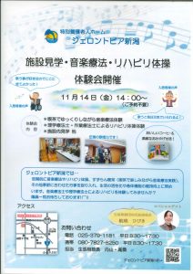 いつもありがとうございます。このたび、ジェロントピア新潟では、下記のようにイベントを行うことになりました。