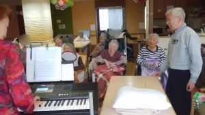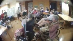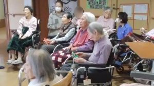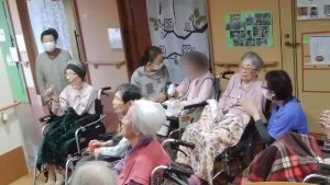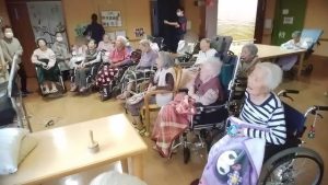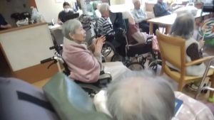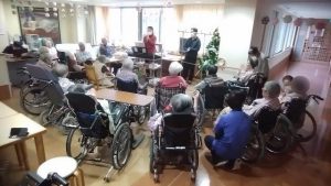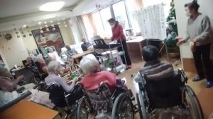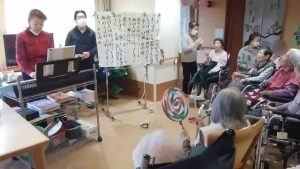 今日は、音楽療法がありました。(3風月にて) みなさん、楽器演奏をしたり、いっしょに歌ったりと、楽しい時間にしてもらっているようでみなさんの笑顔がたくさん見れてうれしいです!※ここでは、写真だけ紹介します。動画は「動画2025年12月」へどうぞ。