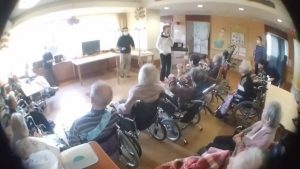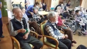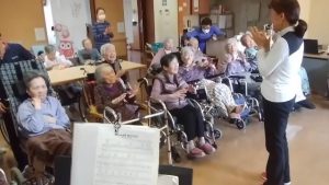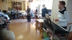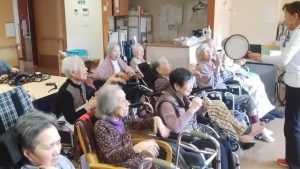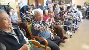 今日は、音楽療法がありました。(変更があり、3花鳥と3風月合同です) みなさん、準備運動・発声練習などのあと、楽器演奏したり、みんなで歌ったり、楽しい時間にしていただいています。今日もみなさんの笑顔がたくさん見れてうれしいです。※ここでは、写真だけ紹介します。動画は「動画2025年11月」へどうぞ。