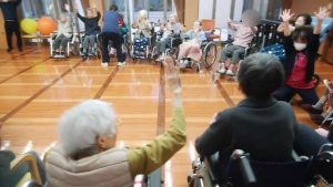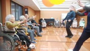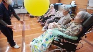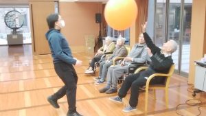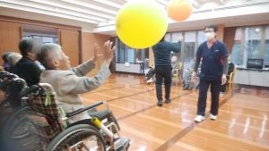 続きです。リハビリ体操、風船バレーのようすです。※ここでは、写真だけ紹介します。動画は「動画2026年2月」へどうぞ。