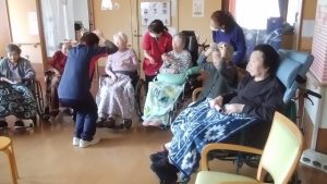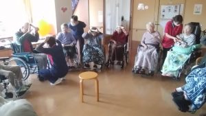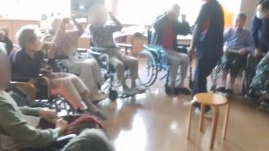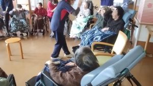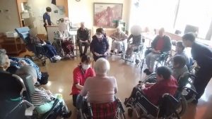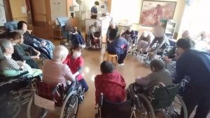 今日は、リハビリ体操がありました。(3花鳥にて) みなさん、できる範囲になりますが、手・腕・足・上半身・足・脚‥‥等々を動かしています。その際には声を出していっしょに 数えながら取り組みます。 ※ここでは、写真だけ紹介します。動画は「動画2026年3月」へどうぞ。