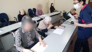 今日は、俳句の会がありました。(1階会議室にて) 前半は、これまで作成した句の穴埋め問題です。みなさん思い出しながら、予想しながら答えていきますが、いろいろな話が出て、今日も盛り上がりました。後半は多賀先生との鑑賞会。みなさんが持ち寄った句を味わいます。ここでもさまざまな話が出て今日ももりあがりました。写真で紹介します。