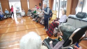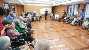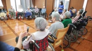今日は、お誕生会がありました。(イルカホールにて) 誕生日紹介の後、みなさんいっしょに歌ったり、体操したり、楽しい時間にしていただいています。今日もみなさんの笑顔がたくさん見れてうれしいです!※ここでは、写真だけ紹介します。動画は「動画2026年4月」へどうぞ。