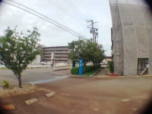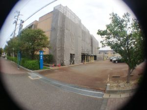 ↑駐車場からみた状況。※今回は北側(駐車場側)の工事。